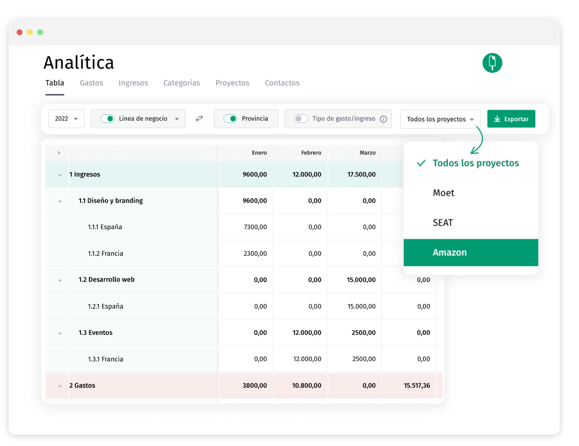 Crea proyectos y visualiza tu tabla en formato pérdidas y ganancias