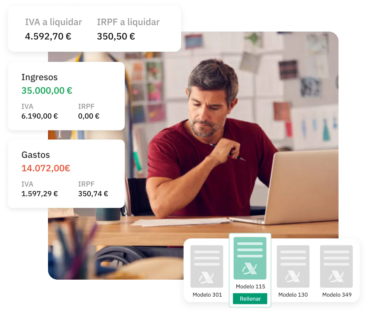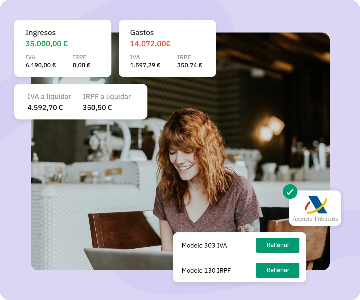 “De un vistazo conoces datos tan importantes como: los ingresos y gastos que has generado, así como el IVA e IRPF a liquidar.”